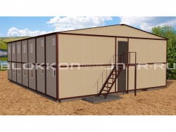 Модульное двухэтажное общежитие из 28-ми штук БК 6м., с коридором на первом и втором этажах